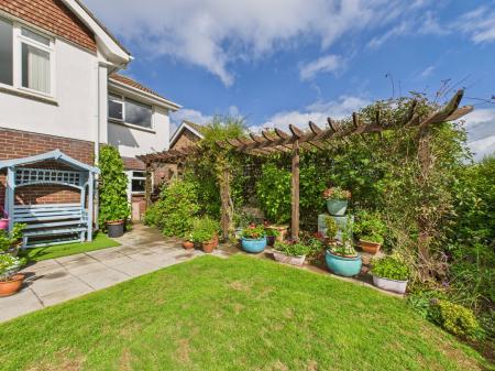 GARDEN To the rear, the property offers a private, well-sized garden with a pergola and shed, ideal for outdoor seating, storage, or light gardening.