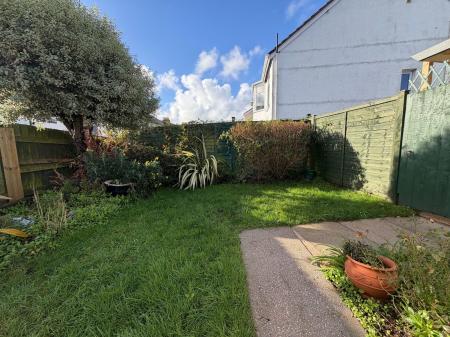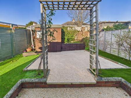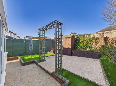 OUTSIDE Small lawned front garden area. Side garden area onto level resin patio with astro turf and garden shed.