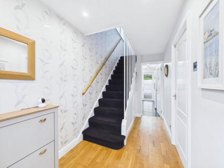 ENTRANCE HALL 13' 0" x 5' 10" (3.96m x 1.78m) Smoke detector. Timber flooring. Radiator. Stairs and hand rail to first floor. Understairs storage cupboard with electric meter, gas meter.