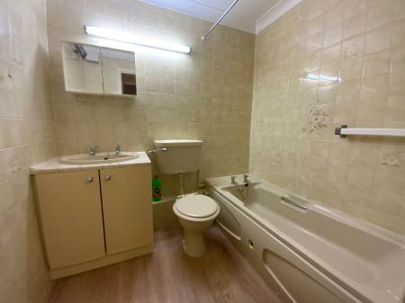 BATHROOM Fitted with a matching three piece suite comprising; low level bath with emergency button and Mira Sport electric shower over. Vanity unit with inset wash hand basin plus matching close couple WC. Tiled walls. Strip light. Electric wall heater.