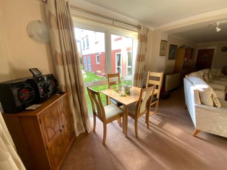 LOUNGE/DINER - 5.3m x 3.2m (17'4" x 10'5") at widest points. A bright room with two double glazed windows overlooking the gardens and surrounding area. Decorative fireplace with inset electric pebble effect fire with wooden surround. Two wall light points. TV point. Emergency pull cord. Night storage heater. Archway to:-