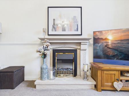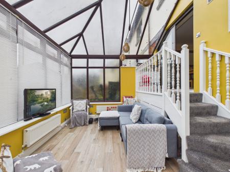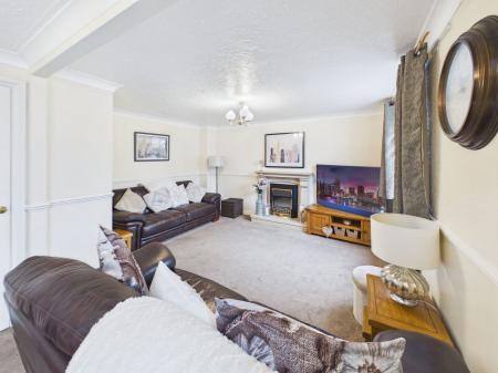 LOUNGE/DINER A spacious and light filled lounge/diner, ideal for both relaxing and entertaining. The room features an electric fireplace, TV point, double glazed windows, and sliding doors leading into the conservatory, along with a gas central heating radiator.