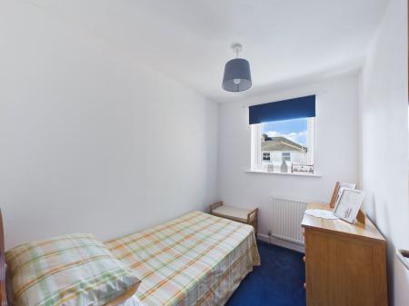 BEDROOM TWO A generously sized double bedroom positioned at the front of the property, featuring a built in wardrobe, a uPVC double glazed window and a gas central heating radiator.