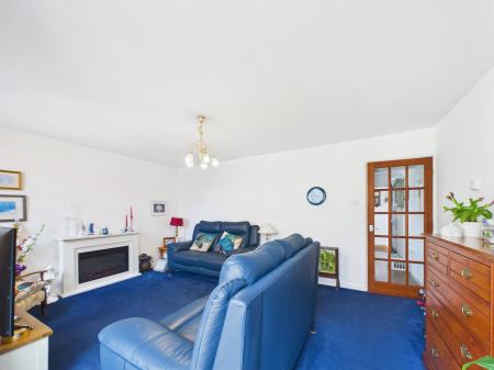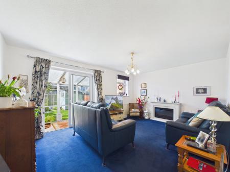 LIVING ROOM A bright and spacious living room positioned to the rear of the property, offering attractive views over the well maintained garden. The room provides ample space for furnishings and features a stylish electric fireplace, along with TV and internet points. uPVC double glazed windows and sliding doors lead into the conservatory. Gas central heating radiator.
