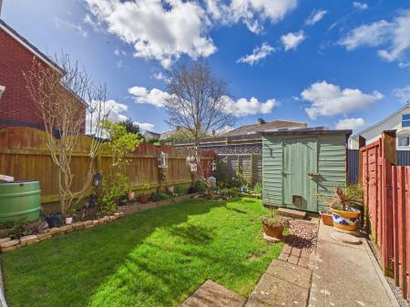 REAR GARDEN A beautifully maintained, south west facing rear garden enjoying plenty of natural sunlight. The space features a patio area ideal for alfresco dining, a generous lawn, and well stocked flower beds with a variety of mature shrubs and plants. Additional benefits include a timber built shed and gated access to the rear parking area.