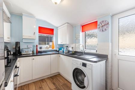 KITCHEN A well proportioned, light filled kitchen fitted with a range of wall, base and drawer units complemented by roll edged work surfaces. The space includes a 1 1/2 bowl composite sink with drainer, an integrated electric oven with grill, a four ring induction hob with extractor hood, and tiled splash back. There is space and plumbing for a washing machine and fridge freezer. Double aspect uPVC windows and a double glazed door open onto the gardens.