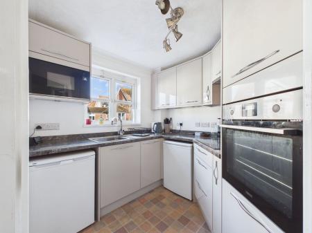 KITCHEN A modern fitted kitchen comprising a range of wall, base and drawer units with roll edge work surfaces over. Inset 1 1/2 bowl stainless steel sink and drainer unit, integrated electric oven with grill, four ring induction hob with extractor hood above and built in microwave. There is space for an under counter fridge and freezer. uPVC double glazed window and emergency pull cord.