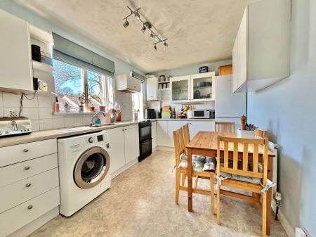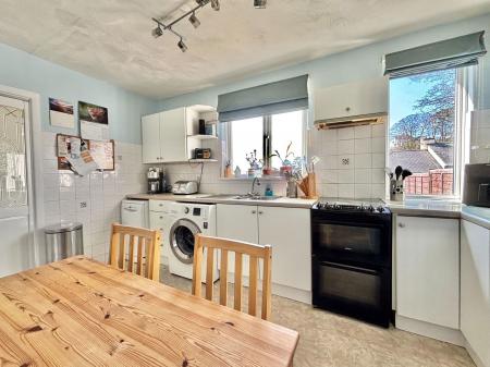KITCHEN/DINER - 4.06m x 2.84m (13'4" x 9'4") A spacious kitchen/diner boasting a range of overhead, base and drawer units with roll edged work surfaces above. A 1 1/2 bowl stainless steel sink and drainer unit, space for a gas cooker and extractor hood above. Space and plumbing also for a washing machine, fridge freezer and slim line dishwasher. Tile backsplash, two uPVC double glazed windows, space for a 6 seater dining table and a gas central heated radiator.