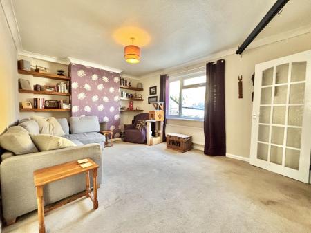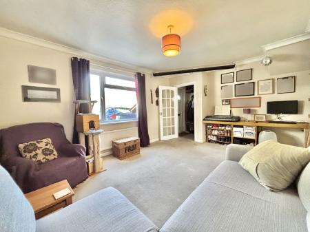 LOUNGE - 5.08m x 3.58m (16'8" x 11'9") A wonderfully large living room to the front aspect of the property offering space for ample furniture. Tv and internet points, built in oak desk and shelving, uPVC double glazed window and a gas central heated radiator.