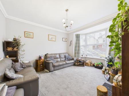 LIVING ROOM A bright and airy principal reception room situated at the front of the home. Offering ample space for a full suite of furniture, it boasts a large uPVC double glazed bay window, TV point, and a gas central heated radiator.