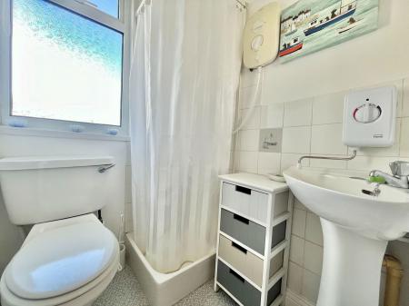 SHOWER ROOM/WC Fitted with a white suite comprising corner shower cubicle with independent wall mounted shower. Pedestal wash basin with electric water heater over, low level W.C. Complementary tiled surrounds. Obscure uPVC double glazed window.