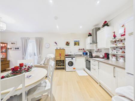 KITCHEN/DINER/LOUNGE - 6.25m x 3.66m (20'6" x 12'0") A beautifully modern and spacious open plan kitchen/diner/lounge perfect for modern day living with the kitchen area boasting a range of overhead, base and drawer units with roll edged work surfaces above. A 1 bowl stainless steel sink and drainer unit, an electric oven with grill integrated and a four ring induction hob with extractor hood above. Space and plumbing for a washing machine and fridge freezer and complimentary tile backsplash.