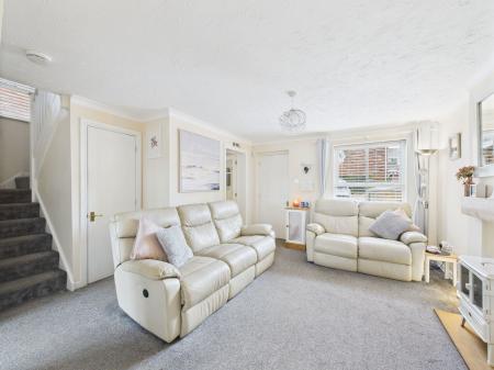 LIVING ROOM A bright and spacious living room offering a comfortable atmosphere with ample room for furniture. Features include space for an electric fire with a solid oak mantel above, double glazed window, TV and internet points, and a gas central radiator. An ideal setting for relaxing or entertaining guests, with seamless flow into the dining area.