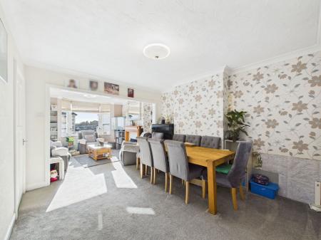 LOUNGE / DINER A bright and generously proportioned lounge/diner offering ample space for relaxation and entertaining. Highlights include a feature gas fireplace, a uPVC double glazed bay window with stunning sea views across to Berry Head, TV and internet points and a gas central heated radiator.