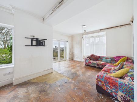 LIVING ROOM A spectacularly large living room with great sea views Paignton. The lounge offers space for an abundance of furniture. Original features include coving and cornicing, double aspect uPVC double glazing with a bay window to the front and French doors leading out to the gardens.
