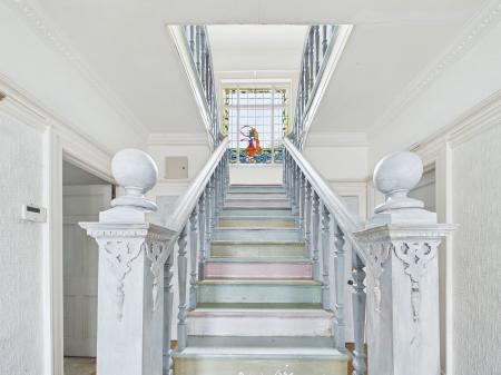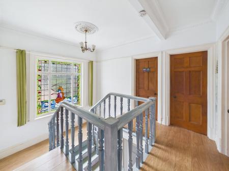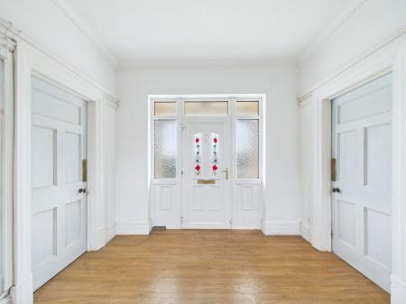 ENTRANCE A uPVC double glazed front door opening into a wide and grand entrance hallway with a central stair case leading up to the split level landing, a uPVC double glazed stained glass window, doors leading to the adjoining rooms, overhead lighting and a gas central heated radiator.