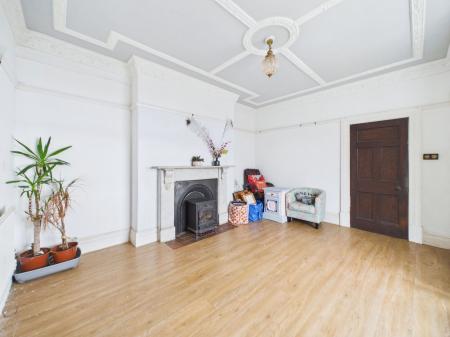 DINING ROOM A wonderfully spacious dining room or further sitting room overlooking the front gardens of the property. An original fireplace surround with marble mantle and wood burning stove, original cornicing and picture rails, uPVC double glazed bay window and a gas central heated radiator.