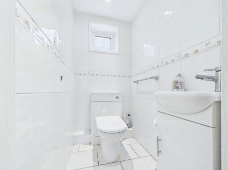CLOAKROOM A useful downstairs cloakroom boasting a low level flush WC and a wall mounted wash hand basin with fitted storage below. Tiled walls, a uPVC obscure double glazed window.
