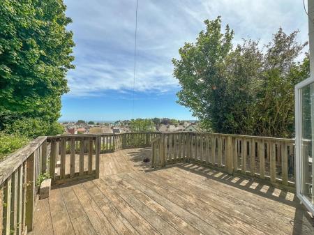 OUTSIDE Expansive gardens that wrap the entire way around the property with a large sun deck to the rear/side with breathtaking sea views perfect for entertaining and further steps then leading down to another large section of garden, to the rear is a further concerted area with a variety of outdoor buildings and to the front is ample off road parking as well as a front lawn.