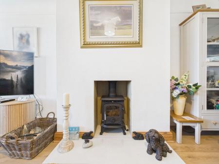 LOUNGE Solid fuel stove with grate Central heating radiator. uPVC double glazing. Sea views.