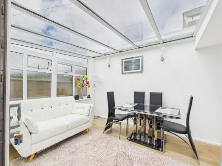 Flooded with natural light the spacious conservatory is currently used as a dining room but could also serve as a second sitting room, hobby space, or garden room. Enjoy the beautiful triple aspect uPVC double glazing and sliding patio doors that open directly onto the sun soaked rear garden.