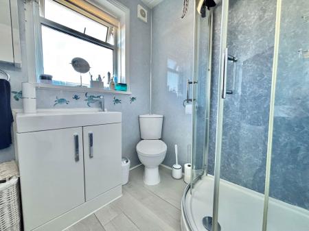 SHOWER ROOM A three piece suite comprising of a low level flush WC, a vanity wash hand basin and a walk in corner shower unit. Panelled walls, uPVC obscure double glazed window and a heated towel rail.