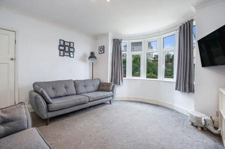 LOUNGE - 13.42ft x 13.75ft Double glazed bay window to the front aspect, tv point, wood burning stove set into fireplace.