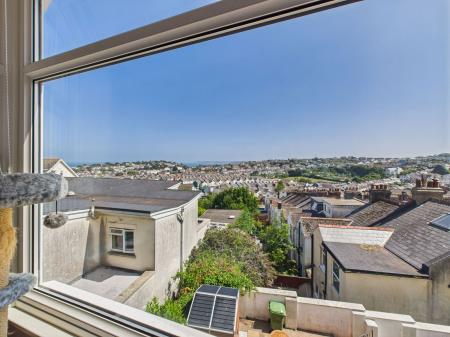 A generous and light filled master bedroom boasting exceptional sea views across the bay. This space includes a uPVC double glazed bay window, ample room for furniture and a gas central heated radiator.