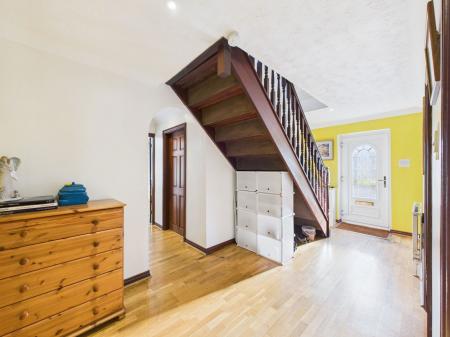 ENTRANCE A uPVC double glazed front door opens into a wide and welcoming hallway with doors to the adjoining rooms and stairs rising to the first floor. The space benefits from an internet connection point, overhead lighting and a gas central heated radiator.