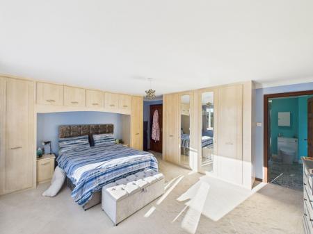 BEDROOM ONE An exceptionally spacious and light master bedroom, featuring an extensive range of built in wardrobes, double aspect uPVC double glazing and gas central heated radiators. A door leads through to the en-suite.