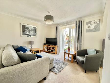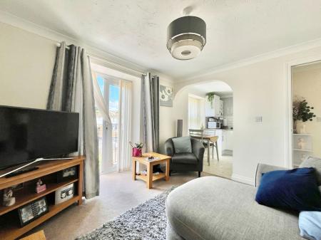 LOUNGE - 3.56m x 3.32m (11'8" x 10'10") A beautifully bright and sizeable living room that opens into the modern kitchen perfect for hosting and with space for a range of furniture. Tv and internet points, a gas central heated radiator and uPVC double glazed French doors open out onto a Juliet balcony.