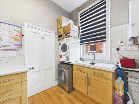 UTILITY ROOM - 3.36m x 1.97m (11'0" x 6'5") A sizeable utility room with a range of overhead and base units with roll edged work surfaces above. Space and plumbing for a washing machine, dryer and fridge freezer. A 1 1/2 bowl porcelain sink and drainer unit, a wall mounted boiler and a gas central heated radiator.