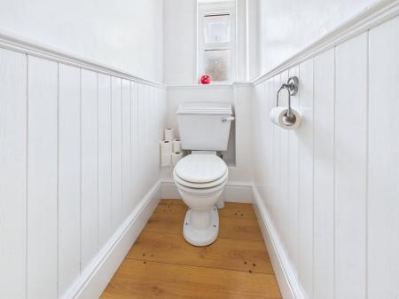 CLOAKROOM A low level flush WC and a wall mounted wash hand basin.