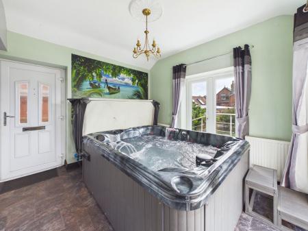 SUN ROOM - 3.57m x 3.35m (11'8" x 10'11") A brilliantly spacious sun room currently being utilised as a hot tub room. Double aspect uPVC double glazing and uPVC double glazed French doors leading out to the rear gardens.