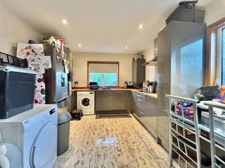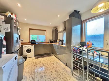 KITCHEN - 4.44m x 3.15m (14'7" x 10'4") A modern kitchen boasting a range of overhead, base and drawer units with roll edged work surfaces above. A 1 bowl composite sink and drainer unit, an electric eye level double oven with grill integrated and a four ring induction hob with extractor hood above, space and plumbing for a washing machine and fridge freezer, an integral dishwasher, cupboard housing the Worcester combination boiler, space for a 4/6 seater dining table, double aspect uPVC double glazed windows and a gas central heated radiator.