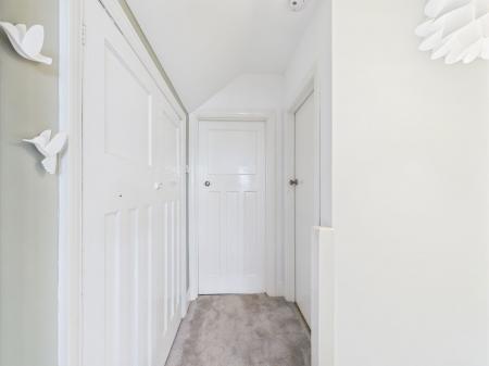 HALLWAY Understairs cupboard. Spot lighting. Central heating radiator.