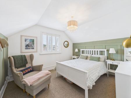 BEDROOM TWO - 3.8m x 3.3m (12'5" x 10'9") Feature wood panelled walls. Fitted shutters. Central heating radiator.