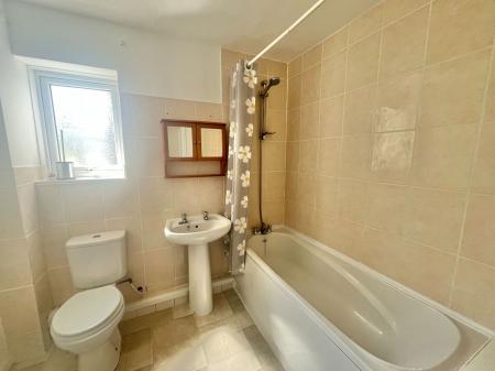 BATHROOM - 2.36m x 1.93m (7' 9" x 6' 4") White three piece suite comprising low level WC, single pedestal wash hand basin and bath with shower over. Radiator. Window to side.
