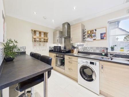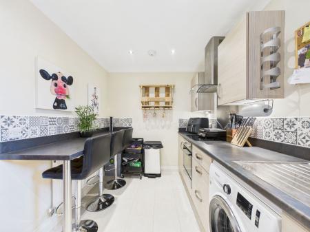 KITCHEN A stylish, modern kitchen fitted with an excellent range of wall, base and drawer units topped with roll edged work surfaces. Included are a 1 1/2 bowl stainless steel sink and drainer, an integrated electric oven with grill, a four ring induction hob with extractor above, plus an integrated dishwasher and fridge freezer. Additional features include space and plumbing for a washing machine, tiled back splash and a uPVC double glazed window.