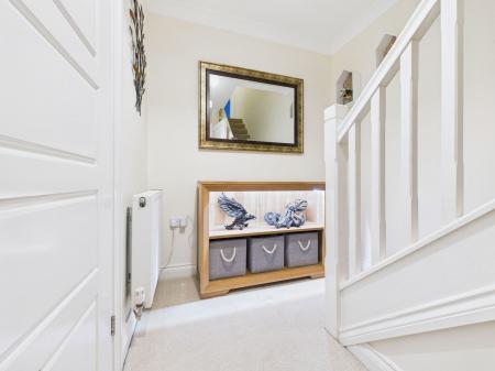 ENTRANCE A uPVC double glazed composite front door opens into a welcoming entrance hall, complete with a deep built in storage cupboard and overhead lighting.