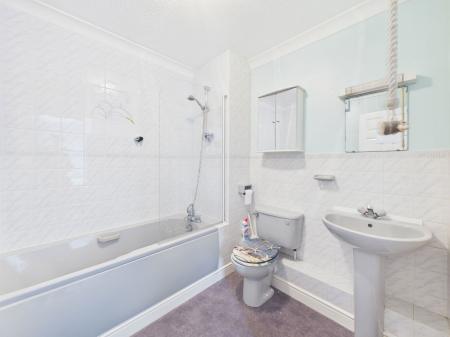 EN-SUITE A sizeable master en-suite boasting a low level flush WC, a pedestal wash hand basin and a panelled bath unit with shower attachments above. Tiled walls, mirror fronted medicine cabinet, extractor fan and a heated towel rail.