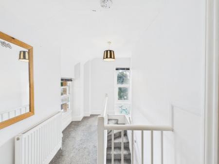 ENTRANCE HALLWAY A secure fire safety front door opens into a wide and welcoming hallway. With stairs rising to the first floor and doors leading to all principal rooms, the space is complemented by overhead lighting, a gas central heated radiator, and an intercom entry system.