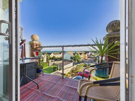 OPEN-PLAN KITCHEN / DINING / LOUNGE A superb open plan living space ideal for both everyday living and entertaining. The stylish kitchen is fitted with an excellent range of base units and drawers topped with sleek granite work surfaces. Integrated appliances include a single electric oven with grill, four ring gas hob with extractor above, fridge freezer, washing machine and dishwasher. A Velux window frames stunning sea views across Goodrington and out toward Torquay, complemented by tiled backsplash. The generous lounge/dining area provides ample space for furnishings, along with TV and internet points. uPVC double glazed sliding patio doors open onto a private sun terrace boasting spectacular panoramic sea views across the bay. Additional features include an intercom system and two gas central heated radiators.
