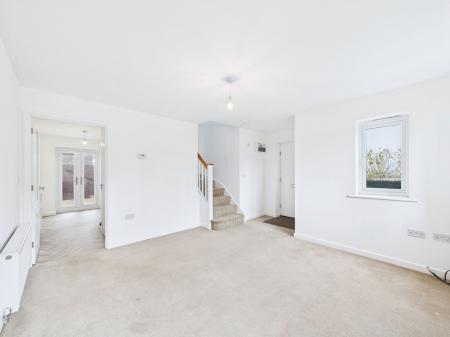 LIVING ROOM A composite double glazed front door opens into a bright and spacious living room, enhanced by dual aspect uPVC double glazed windows that allow natural light to flood the space. The room benefits from TV and internet points, a thermostat heating control, a gas central heating radiator and stairs rising to the first floor.