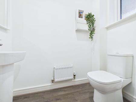 DOWNSTAIRS W/C Offering a vanity wash basin, toilet, small radiator a double glazed frosted window.