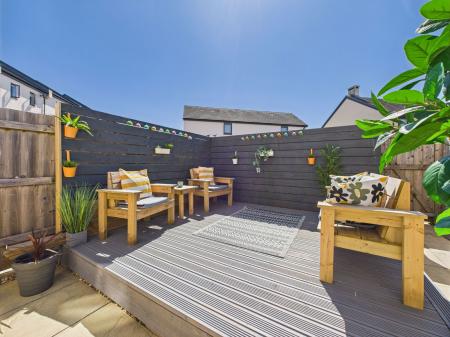OUTSIDE The south east facing rear garden has been thoughtfully landscaped for minimal maintenance and maximum enjoyment of the sun. Predominantly laid to patio, the garden also features a raised sun deck ideal for alfresco dining and entertaining. Additional features include a built in storage area, outdoor tap, and gated access to the allocated rear parking spaces.