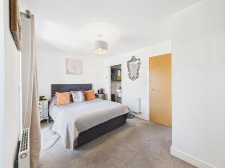 BEDROOM ONE An expansive master suite at the front of the property, featuring built in wardrobes and shelving. Enjoy access to a private balcony through a UPVC double glazed door, with additional natural light from a UPVC window. Gas central heated radiator.