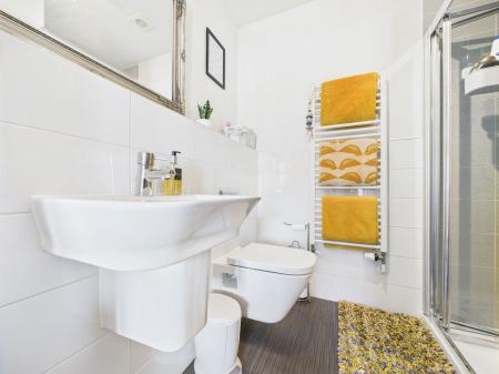 EN-SUITE Modern and well appointed, featuring a double walk in shower, low flush WC, and a wall mounted wash hand basin. Includes contemporary tiling, shaver point, extractor fan and a white heated towel rail.