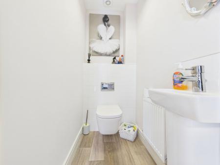 CLOAKROOM A practical downstairs cloakroom, fitted with a low level flush WC and pedestal wash hand basin. Finished with part tiled walls, extractor fan and a gas central heated radiator.