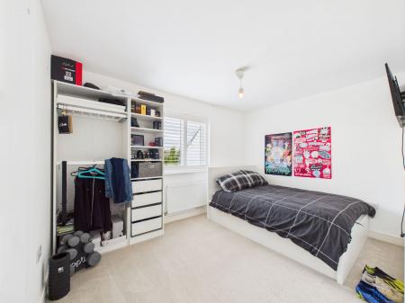 BEDROOM FOUR A versatile fourth bedroom ideal as a single bedroom, home office, study, or hobby space. Includes a deep fitted storage cupboard, uPVC double glazed window and a gas central heated radiator.